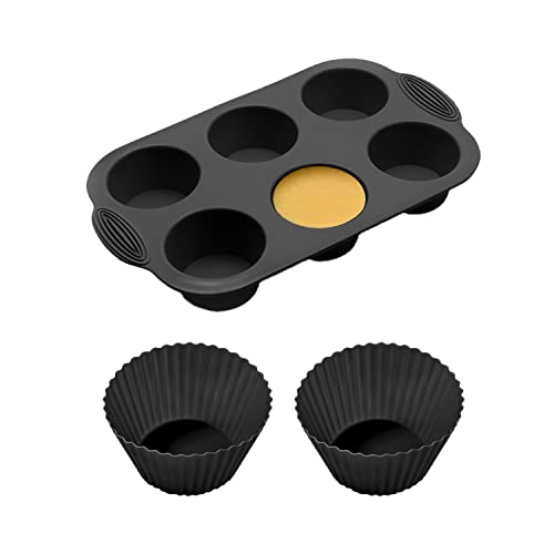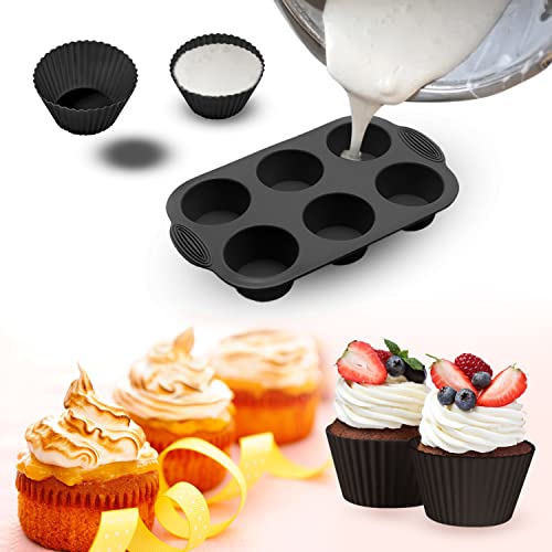 PFLYPF 1 stampo per muffin in silicone da 6 tazze con 2 stampi per cupcake, stampi per torte in silicone, stampi per muffin rotondi, utensili fai da te