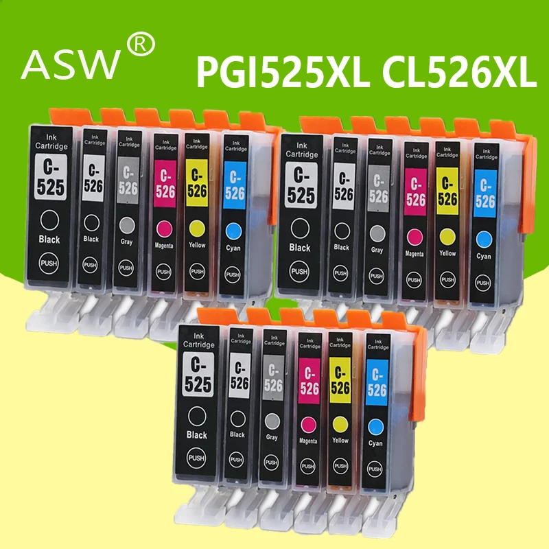 ASW 3set PGI525 PGI 525 CLI 526 Ink Cartridges for Canon Pixma iP4850 ix6550 MG5150 MG5250 MG6150 MG8150 MX885 MG5350 Printer