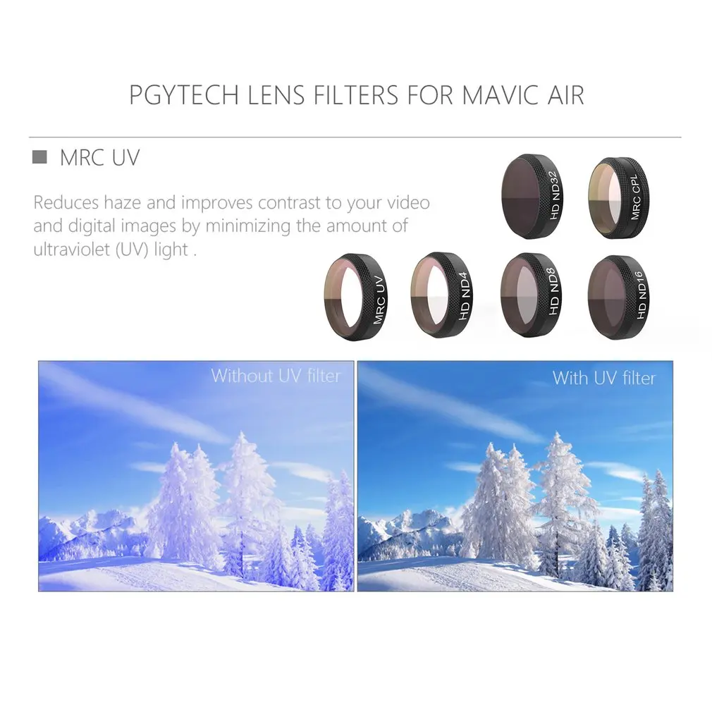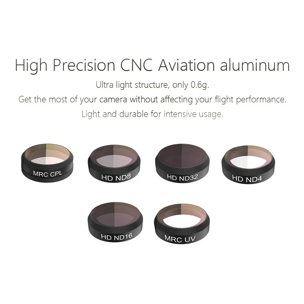 PGYTECH CNC Aluminum Alloy Lens Filters Lightweight Camera Filter Set UV ND4 8 16 32 CPL Suitable for DJI MAVIC AIR