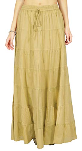 Phagun - Gonna lunga bohemien Gypsy in cotone con volant, da spiaggia