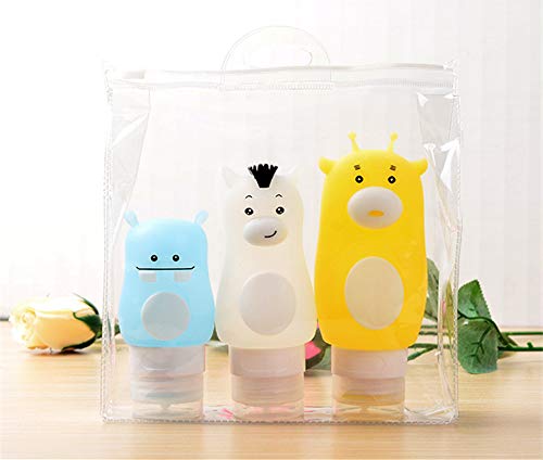 PhantomSky Set di 3 Bottiglie da Viaggio in Silicone, Contenitori Anti-perdita con Ventosa Riutilizzabili Comprimibili per Shampoo, Balsamo, Crema, Lozione con Sacchetto Portaoggetti (90/70/50ml)