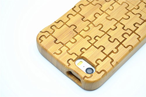 PhantomSky Cassa di Legno di iPhone SE / 5S / 5, [Serie di Lusso] Qualit à Premium Cover in bambù/Legno Naturale con Gratis Paraschiena Schermo per Il Tuo Smartphone - Puzzle bambù(Bamboo Puzzle)