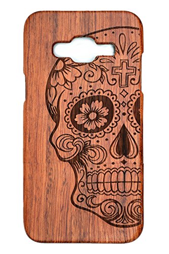 PhantomSky Protettiva Cover di Scultura in Legno Compatibile per Samsung Galaxy J3, Custodia Elegante Hard Case in Legno Naturale Design Antiurto - Cranio di Palissandro