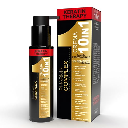 Pharma Complex Crema Trattamento Capelli 10 in 1, Termoprotettore capelli senza risciacquo con Keratina, Anticrespo, Fortificante per Capelli fragili e soggetti alla Rottura, 100ML