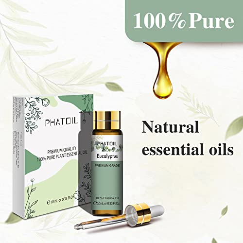 PHATOIL Oli Essenziali di Eucalipto 10 ml, Oli Essenziali Naturali Puri al 100% per Diffusore Umidificatore, Olio Essenziale di Aromaterapia di Grado Terapeutico per Relax