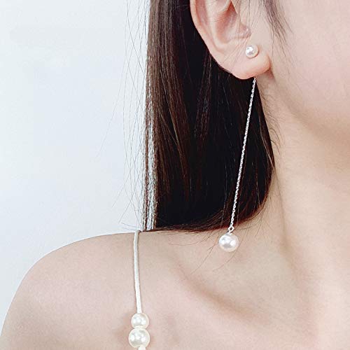 Coppia di eleganti orecchini pendenti lunghi con perle tonde, 100 x 8 mm (4 x 0,32 pollici), Peso 2,7 g