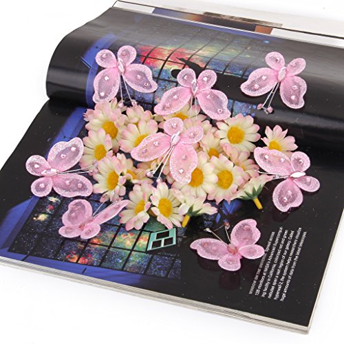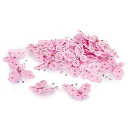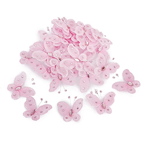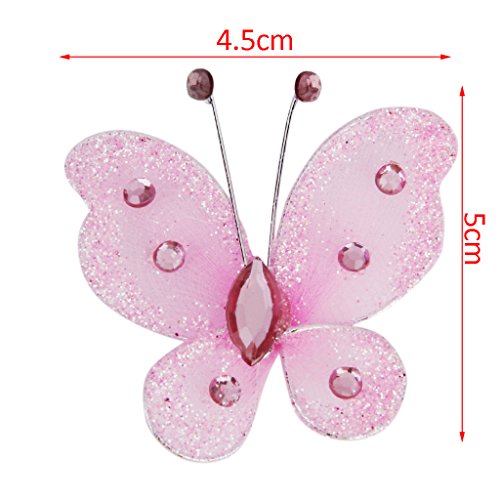 Phenovo Wired Mesh Stocking Glitter Butterflies 5 x 4.5cm Pack of Approx.50, rosa