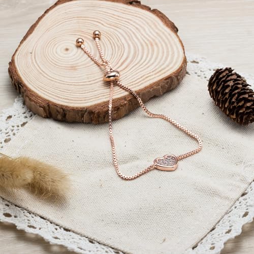 Realizzato con fiducia. Bracciale dell'amicizia con pavé di cuore placcato in oro rosa creato con cristalli Zircondia da Philip Jones. Acquista con fiducia con la nostra garanzia di 1 anno e ricevi i tuoi soldi indietro se non sei soddisfatto al 100% del tuo braccialetto. La nostra consegna gratuita e la spedizione rapida assicurano che il tuo braccialetto sarà con te prontamente.