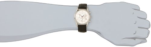 Cinturino in pelle nera. Quadrante silver. Datario. Fondello a vite.