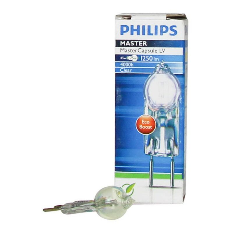 Descrizione: Lampada alogena ELV senza riflettore - MASTERCapsule - Base GY6.35 - T4: .434 inch / 11mm - Trato infrarossi - 45W - 12V - CRI 100 - Posizione di funzionamento universale. Durata: 4000 h Dotato di tecnologia EcoBoost con conseguente risparmio energetico del 40%.