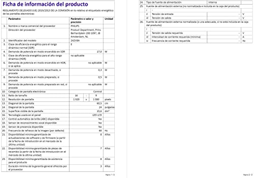 Contenuto della confezione: monitor Philips da 242 V, 8 A e 60,5 cm (23,8 pollici), con cavo di alimentazione, cavo VGA, driver CD (versione in lingua italiana non garantita)