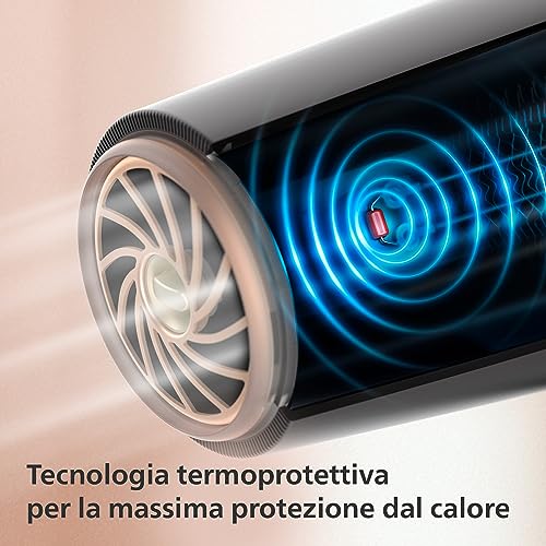 Philips Asciugacapelli serie 5000 - Asciugacapelli blu e finiture metallizzate con tecnologia termoprotettiva, diffusore di volume e beccucci da 9 mm e 11 mm (modello BHD510/20)
