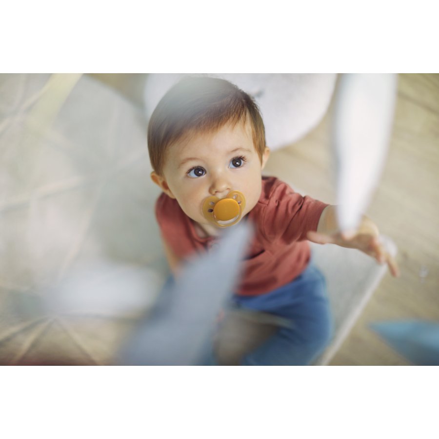 Dettagli del prodotto: Età: 6 - 18 mesi Ultra morbido e flessibile Adatto alle mascelle e senza BPA Sterilizza e conserva in un unico comodo contenitore Tettarella morbida e flessibile che riduce i segni e le irritazioni della pelle Tettarella arrotondata per un maggiore comfort ogni giorno Supporta la forma naturale del palato, dei denti e delle gengive Tettarella strutturata e morbida come la seta per un comfort calmante Popolare tra i bambini di tutto il mondo* *Sviluppato in collaborazione con esperti di salute e madri. *I test dei consumatori negli Stati Uniti dal 2016 al 2017 mostrano un tasso medio di accettazione del 98% per la tettarella testurizzata Philips Avent utilizzata nei nostri ciucci ultra air e ultra soft. *Per ragioni igieniche, i ciucci devono essere sostituiti ogni quattro settimane. *La marca di ciucci leader nel mondo *La nostra gamma supporta le mamme e i bambini in ogni fase dello sviluppo *Secondo uno studio indipendente condotto negli Stati Uniti nel febbraio 2017, l'85% delle madri intervistate ha trovato questo ciuccio più morbido di otto modelli comparabili di altre marche leader Materiale e dimensioni: Silicone