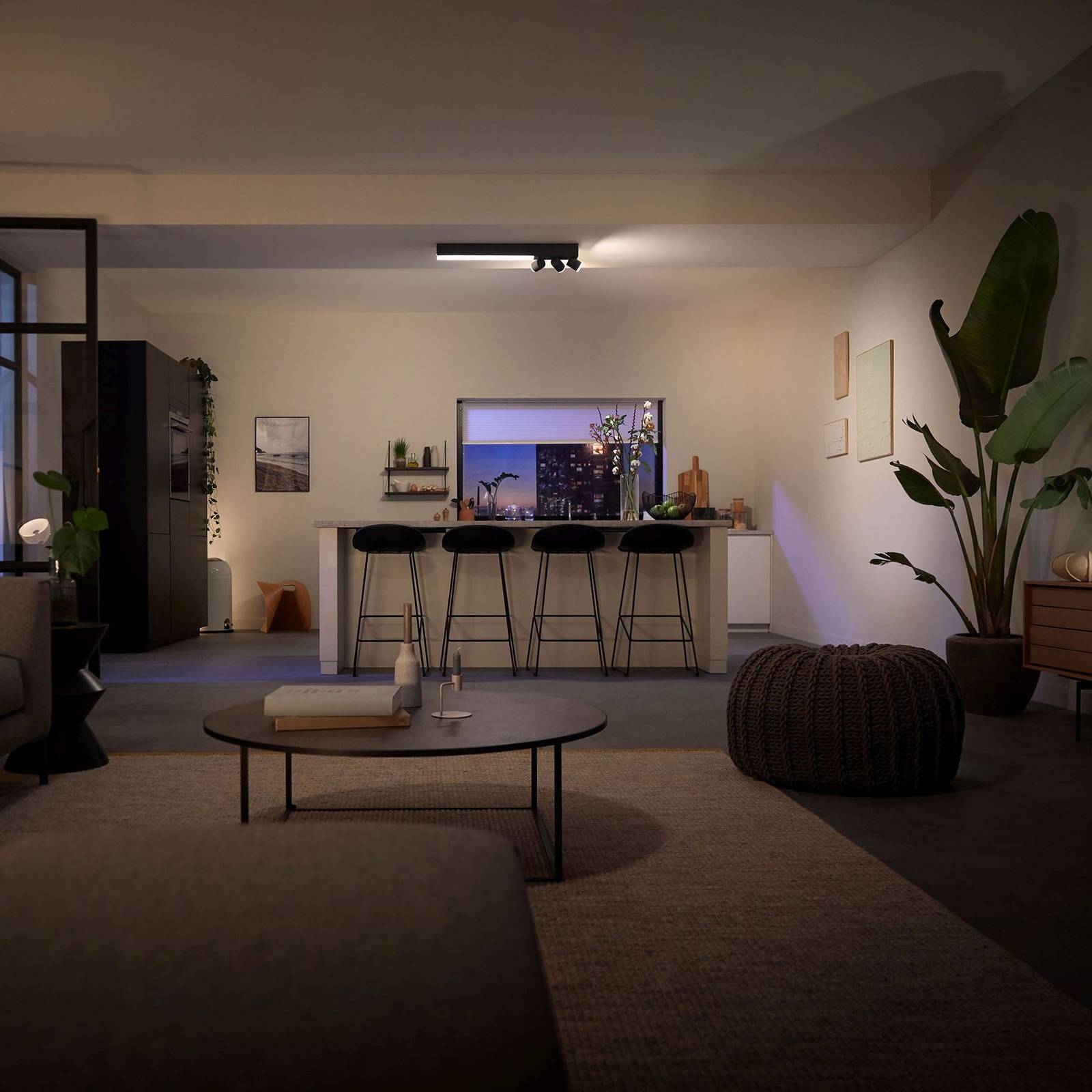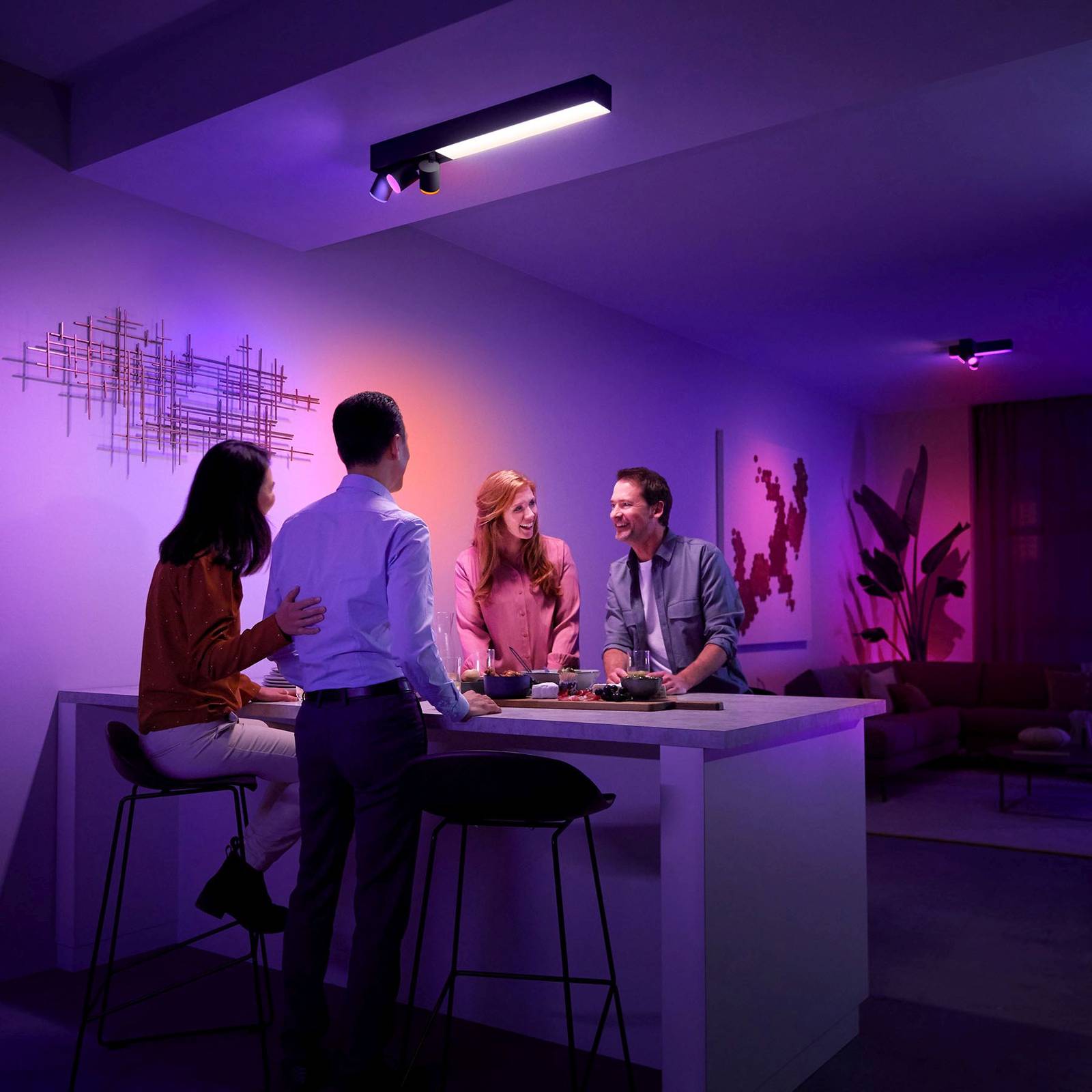 Tre spot, una barra luminosa - lo spot LED Philips Hue LED Centris con ambiente bianco e colore Impostare gli accenti e fornire allo stesso tempo un'illuminazione generale diffusa è un gioco da ragazzi con questa innovativa illuminazione a soffitto. Il faretto a LED Centris, adatto per un controllo intelligente, è dotato di tre spot e di una barra luminosa con LED installati in modo permanente e un diffusore in plastica. Mentre il resto dell'apparecchio è in alluminio, ha un aspetto molto pregiato ed elegante e può essere integrato in quasi tutti gli spazi abitativi moderni. Grazie alla tecnologia Bluetooth, la luce può essere comodamente controllata senza accessori utilizzando l'app gratuita Bluetooth. Tuttavia, per accedere alle numerose ed entusiasmanti funzioni, si raccomanda di collegare Centris al Philips Hue Bridge e di integrarlo nel sistema Smart Home. Questo apre molte nuove possibilità - come la regolazione della luminosità a va