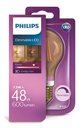 Philips LED Classic 7.5 W (48 W), dimmerabile, Edison E27 oro filamento lampadina, pub luci, Vetro Sintetico, Golden, E27, 7.5 wattsW 240 voltsV