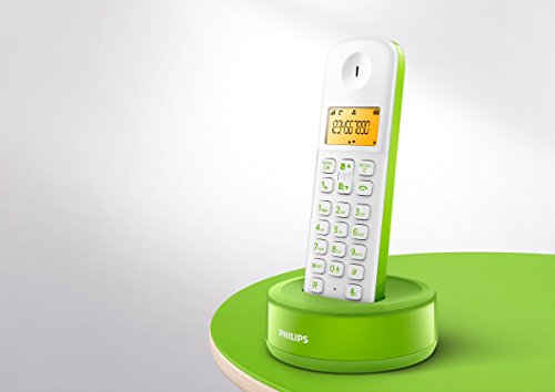 Philips D1301WN Telefono Cordless con Display da 4.1 cm, Retroilluminazione, Verde/Bianco