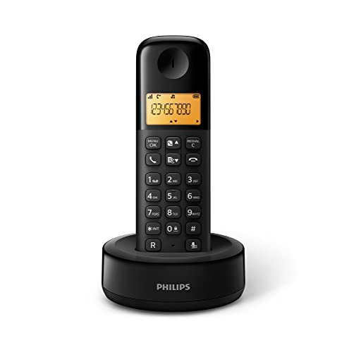 Philips D1601B / 01- Telefono cordless DECT con 1 ricevitore, ampio display (4,1 cm) e ID chiamante - Nero