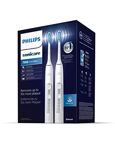 Contiene: 2 manici Philips Sonicare 7300 ExpertClean, 2 testine C3 Premium Plaque Control, 2 testine G3 Premium Gum Care, una custodia da viaggio e due caricatori