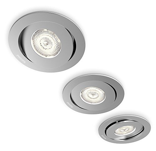 L'elegante set di tre faretti LED da incasso Philips Smart Spot Aster ope in alluminio si adatta perfettamente al soffitto, per una linea elegante. Gli avanzati LED ad intensità regolabile offrono una luce bianca calda, luminosa e brillante come quella di una lampada alogena.