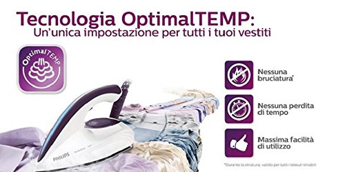 Tecnologia OptimalTEMP - consente di stirare dal jeans alla seta, dal lino al sintetico, con un'unica impostazione di temperatura