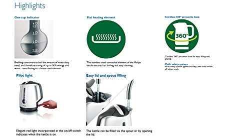 Philips HD4644/00, Bollitore a risparmio energetico, 3000 Watt, 1,7 l, Bianco