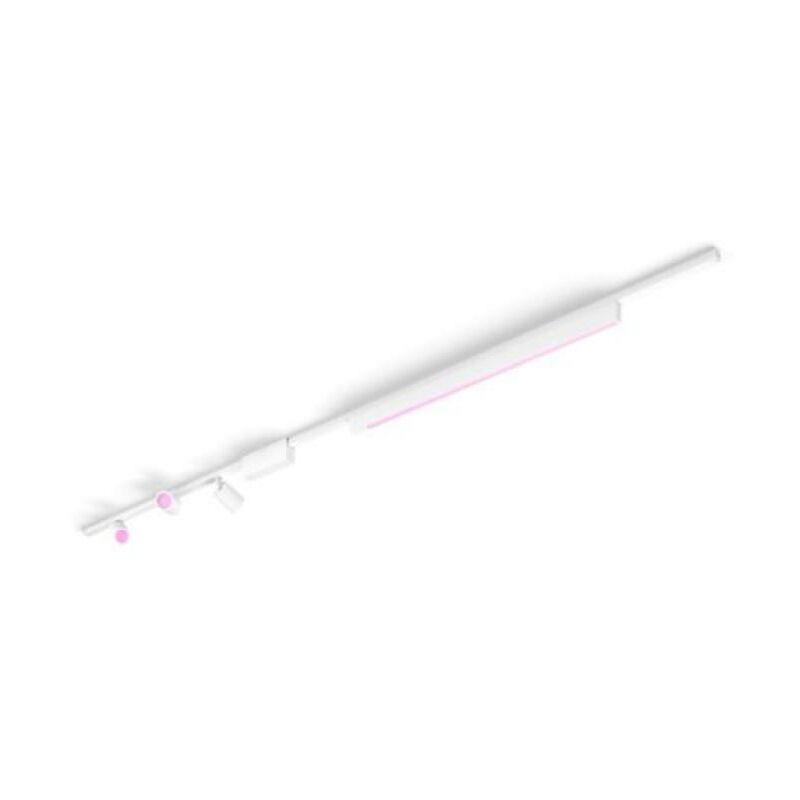 Lampada led da binario Philips Hue Perifo-set 3 faretti bianco- 40782400 Questo kit di illuminazione connesso a binario per soffitto, di colore bianco, include tre faretti spot cilindrici, una barra luminosa lineare, un binario da 1 metri, un binario da 1.5 metro e una alimentazione posizionata fra due binari. Specifiche Colore BiancoMateriale Metallo e materiali sinteticiIndice di resa cromatica (CRI) 90Lunghezza 271,5 cmLarghezza 2,6 cmDurata massima della lampadina 25.000 oreTecnologia lampadina 24 VColore della luce 2.000-6.500 K Hue White Color ambianceTensione di rete 220-240 VApparecchio dimmerabile SìLED SìCodice IP IP20 (da interno)Codice GPC 929003117601 Tipo: Lampada Tecnologia di illuminazione: LED