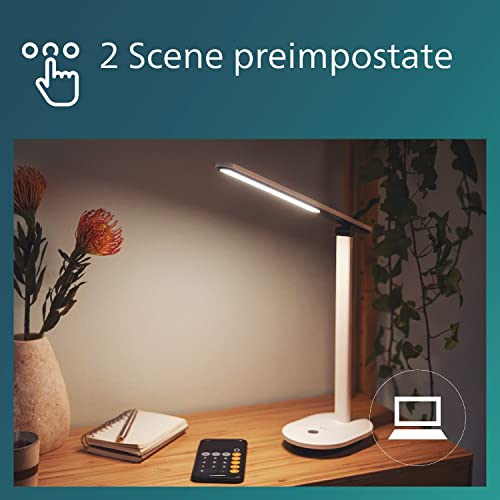 Philips LED Lampada da Tavolo Lvory, Dimmerabile, Batteria da 300 mAh 2700-5000K, 5W, Bianco