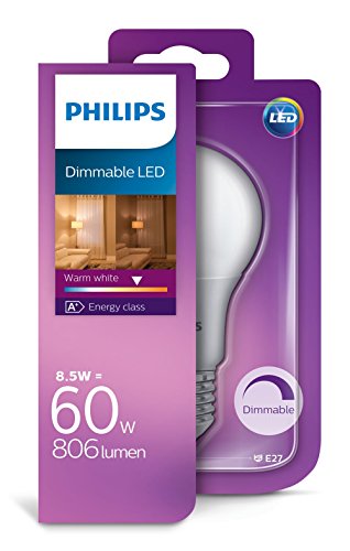 Philips LED60SMDIM Lampadina LED Goccia, Plastica, 8.5W Equivalenti a 60W, E27, Trasparente
