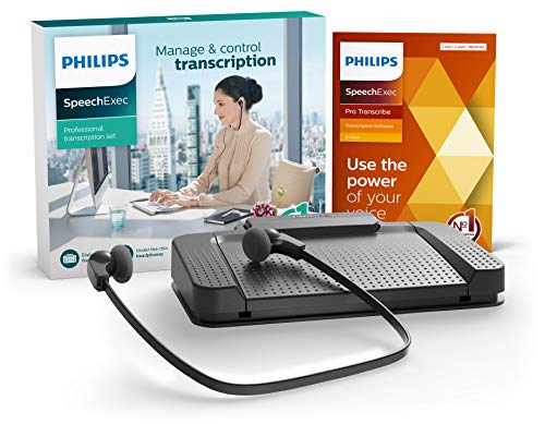 Philips LFH7277/08 SpeechExec - Set di transcription con interruttore a pedale USB ergonomico ACC2330, cuffie stereo sottofondo LFH0334, incluso software di riproduzione SpeechExec Pro 2 anni ABO