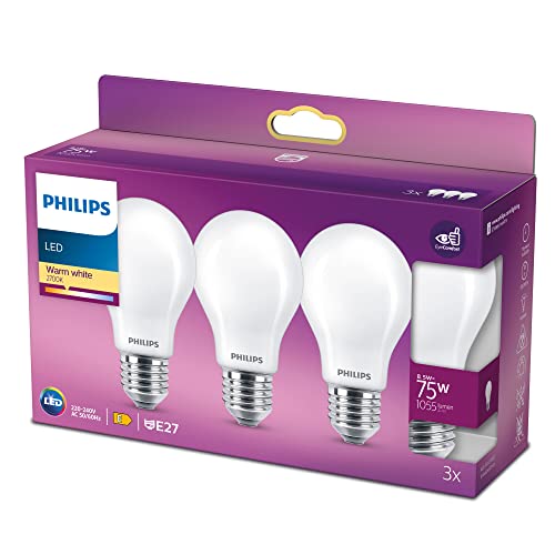 Philips Lighting 26673500 - Lampadina LED EEK A++ (A++ - E) E27, 8,5 W = 75 W, luce bianca calda, 60 mm x 60 mm, 3 pezzi