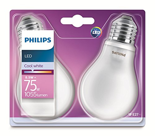 Philips Lighting Lampadina LED standard di luce fredda E27, 8.5 W, 2 pezzi