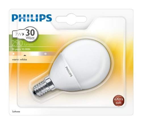 Philips Lighting S10YSF7E14B1 Lampadina a Risparmio Energetico, Sferica Smerigliata, 7W (Corrispondenti a 30W), Attacco Piccolo E14, Luce Bianca Calda