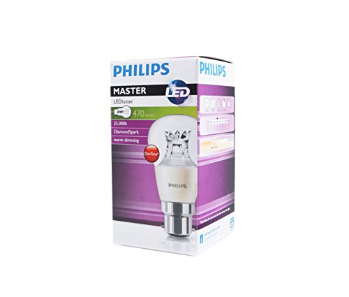 Philips Master LED 6 W (40 W), attacco a baionetta B22, lustre, tono bianco caldo, dim, trasparente, Vetro, Clear, B22, 6 wattsW 240 voltsV