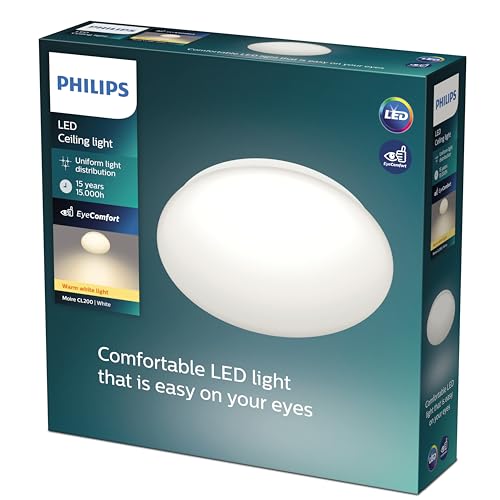 Philips LED Moire, Plafoniera Rotonda, Luce Calda, 10W, Bianco