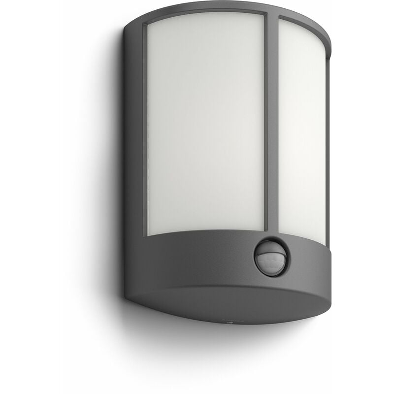 Resistente alle intemperie, adatta per l'uso in giardino e all'aperto. Include un sensore di movimento: dà il benvenuto accendendosi e permette di sapere quando qualcuno sta arrivando. Fornisce una luce bianca calda a LED di alta qualità. Per non rimanere mai al buio, durata di funzionamento molto lunga, fino a 25 anni. Permette di risparmiare fino al 80% di energia rispetto alle normali lampade tradizionali. Altezza: 24.6 cm · Attacco: LED a montaggio fisso · Classe defficienza energetica (A++ - E): LED · Classe di protezione: II · Colore: Antracite · Colore luce: Bianco caldo · Colore luce (gradi Kelvin): 2700 K · Flusso luminoso totale: 600 lm · Forma (apparecchi di illuminazione): Semitondo · Larghezza: 8.8 cm · Lunghezza - ProfonditÃ: 18 cm · Materiale: Alluminio · Numero di lampadine: 1 · Peso: 649 g · Potenza: 6 W · Potenza per lampada: 6 W · Tensione di funzionamento: 230 V · Tipo di luci (categoria): Lampada LED da parete per esterno con rilevatore di