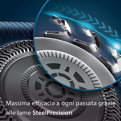 Rimuove più peli a ogni passata*: le 45 lame autoaffilanti SteelPrecision si muovono fino a 90.000 volte al minuto per una rasatura accurata ed efficace
