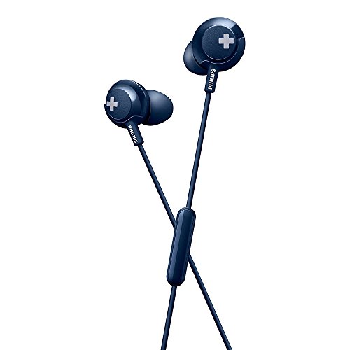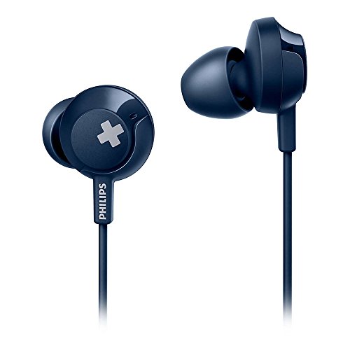 Philips SHE4305BL/00 BASS+ - Auricolari in-ear con microfono, isolamento acustico, telecomando blu