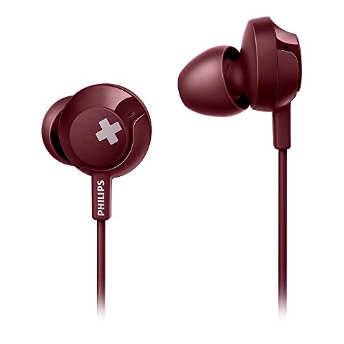 Philips SHE4305RD/00 BASS+ - Auricolari in-ear con microfono, isolamento acustico, telecomando, colore: Rosso