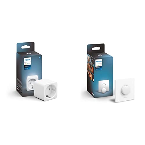 Philips Hue Smart Plug, Presa intelligente, Controllo Tramite Bluetooth, Compatibile con Alexa, Google Home e Apple HomeKit & Philips Hue Smart Button, Telecomando Bluetooh, Controllo Vocale Bianco