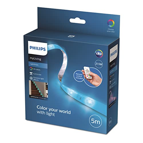 Philips LED Striscia LED, 5M, 21W, 2700K, Luce da Bianca Naturale a Colorata, Telecomando incluso