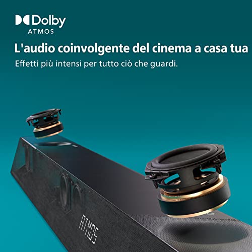 Philips TAB8907/10 Soundbar 3.1.2 Subwoofer Wireless, Dolby Atmos, Audio Cinematografico, HDMI eARC, 720W