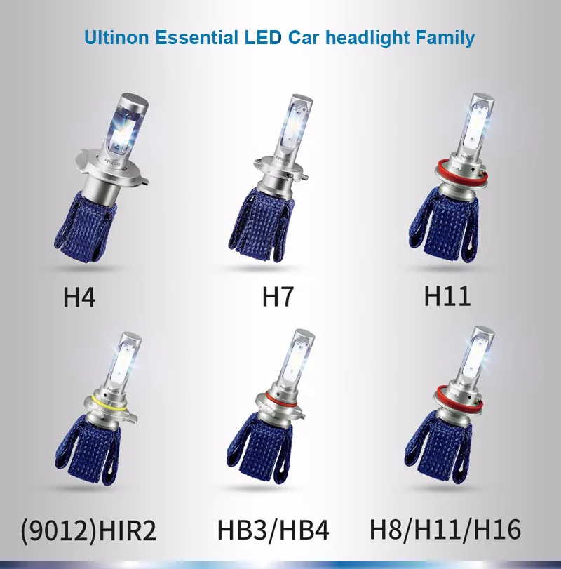 Philips LED H4 H7 H8 H11 H16 9005 9006 9012 HB3 HB4 HIR2 Ultinon Essential LED Car 6000K White Light Auto Headlight Lamps 2X