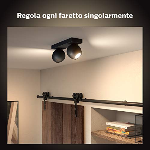Philips Hue White Ambiance Buckram, Faretto LED smart, Bluetooh, Controllo Vocale 2 Punti Luce, lampadine e Telecomando Dimmer Switch Inclusi, Nero