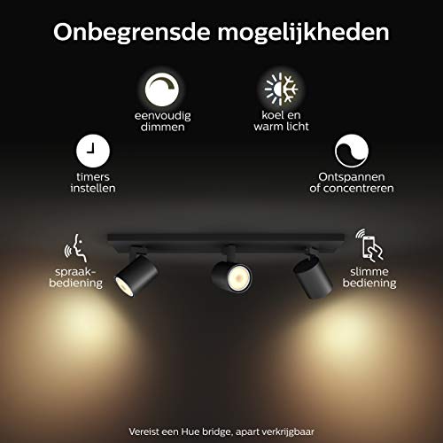 Philips Hue White Ambiance Faretto Smart Runner, 3 Punti Luce, Lampadine Hue Smart LED GU10 incluse, Bluetooh, 3x5.5 W, Nero, Telecomando dimmer switch incluso