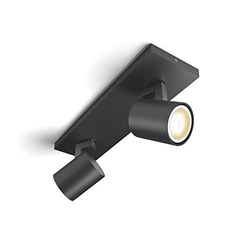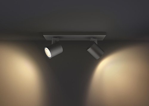 Philips Hue White Ambiance Faretto Smart Runner, 2 Punti Luce, Lampadine Hue Smart LED GU10 incluse, Bluetooh, 2x5.5 W, Nero, Telecomando dimmer switch incluso
