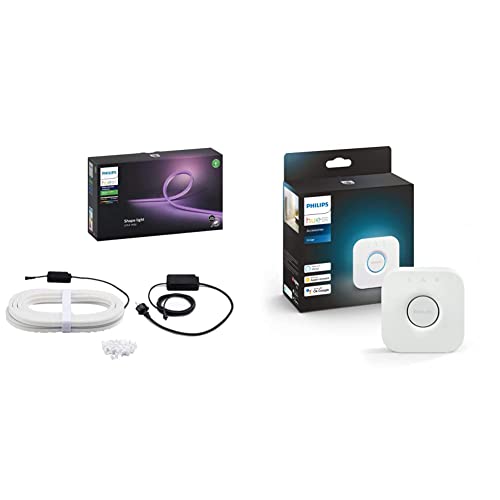 PHILIPS Hue White&Color Ambiance Striscia LED Smart, per Esterni e Interni, Bluetooh, Controllo Vocale Alimentatore Incluso, 39.5W, 5m & Bridge 2.0, Centro di Controllo del Sistema Hue, Bianco