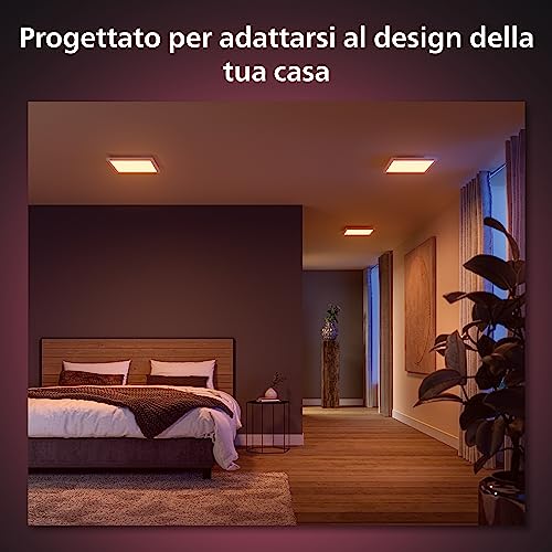 Philips Hue White and Color Ambiance Surimu, Plafoniera Smart Quadrata, Luce Bianca o Colorata, Dimmerabile, 25W, Bianco