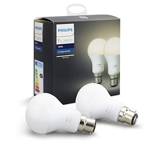 Philips Hue White personal wireless Lighting, Twin Pack, con attacco a baionetta B22, 2 x LED 9 W, funziona con ALEXA, Apple Homekit