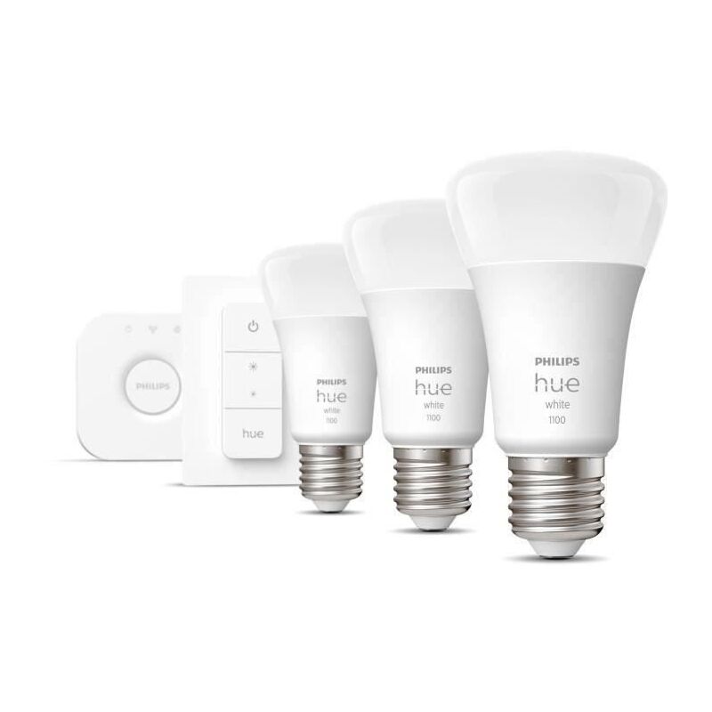 PHILIPS Hue White Starter kit Lampadina LED intelligente da 9,5 W - E27 x3 e telecomando Hue