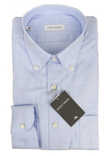 Philo Vance - Camicia Uomo Celeste Canvas Button Down Spezia - Celeste, 42